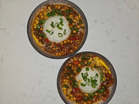 Saftig gebratenes Hähnchen, cremige Kichererbsen und aromatische Gewürze, diese scharfe Pfanne wärmt von innen und ist einfach zubereitet. Perfekt mit Reis oder Quinoa.