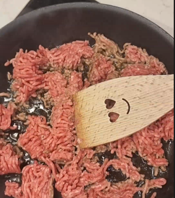 Hackfleisch in etwas Öl anbraten, Zwiebeln mitdünsten