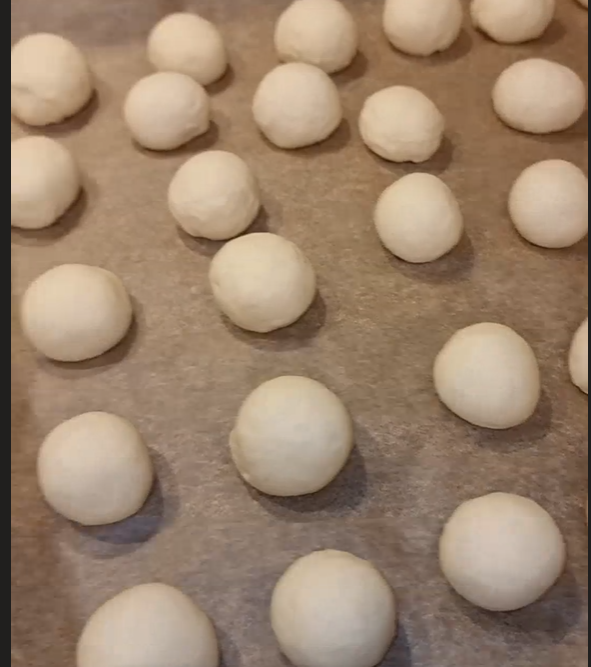 Zu runden Kugeln formen, dabei die Enden gut verschliessen, damit sie beim backen nicht aufgehen