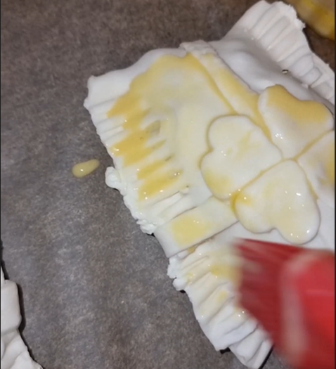Ei und Milch verquirlen und die Päckchen damit bestreichen