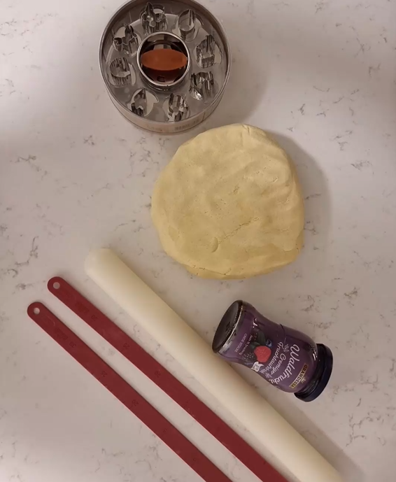 Die Hälfte der Plätzchen mit einem Loch oder Motiv (z. B. Herzen, Sterne, Hasen) ausstechen