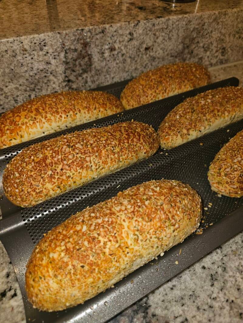 Brote in ein eingefettetes Baguetteblech legen, mit einem Küchentuch abdecken und 30–45 Minuten gehen lassen