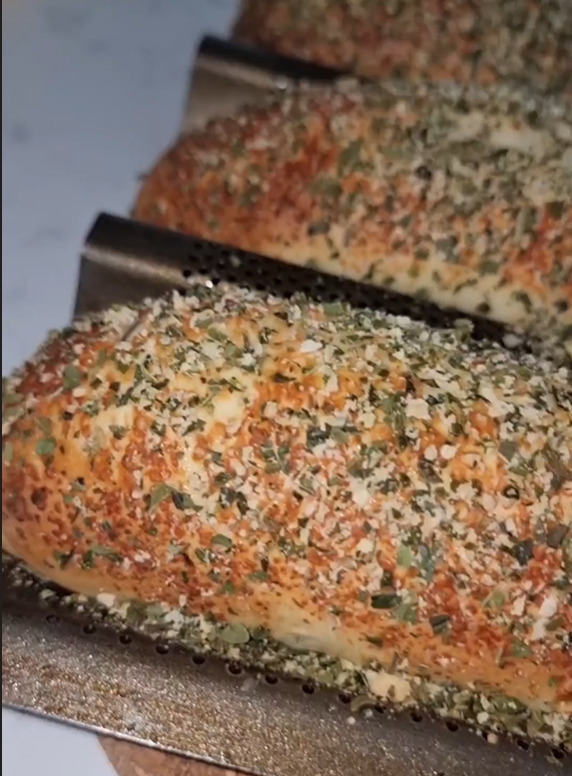 Für frischen Geschmack im Backofen bei 170 °C Ober-/Unterhitze ca. 5–7 Minuten aufbacken