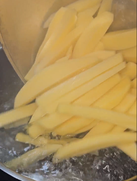 Kartoffeln schälen (oder mit Schale lassen) und in gleichmässige Stifte schneiden