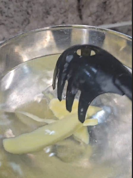 In kaltem Wasser kurz abspülen, damit die Stärke etwas gelöst wird