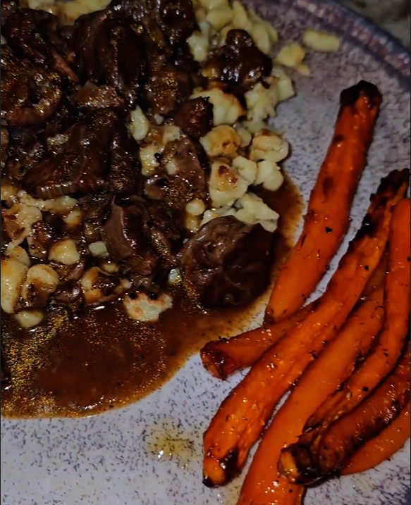 Je länger das Gulasch schmort, desto zarter wird das Fleisch, jedoch mindestens 2 bis 2½ Stunden. Für ein besonders kräftiges Aroma verwende ich Räuchersalz, das verleiht dem Gericht eine feine, herzhafte Tiefe. Am besten am Vortag zubereiten, über Nacht im Kühlschrank durchziehen lassen und am nächsten Tag nochmals aufkochen, dadurch wird der Geschmack noch intensiver und harmonischer.