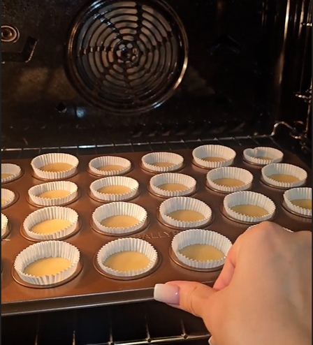 Teig in die Förmchen füllen (jeweils etwa zu 2/3) und ca. 12–15 Minuten backen