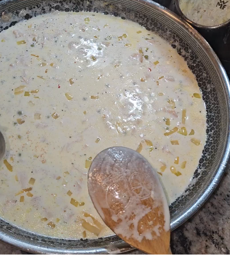 Erbsen dazugeben und kurz mitziehen lassen