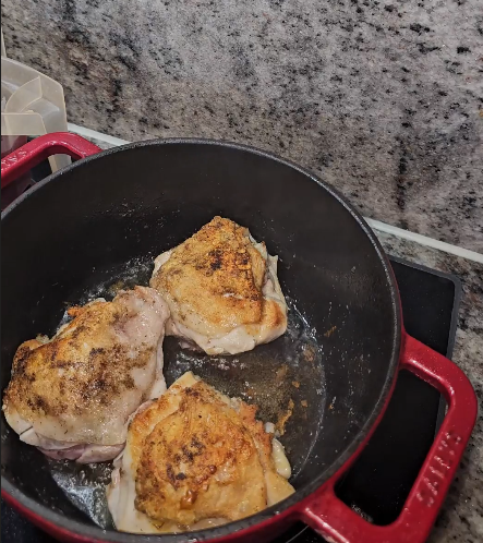 Je länger das Gericht schmort, desto zarter wird das Hähnchen