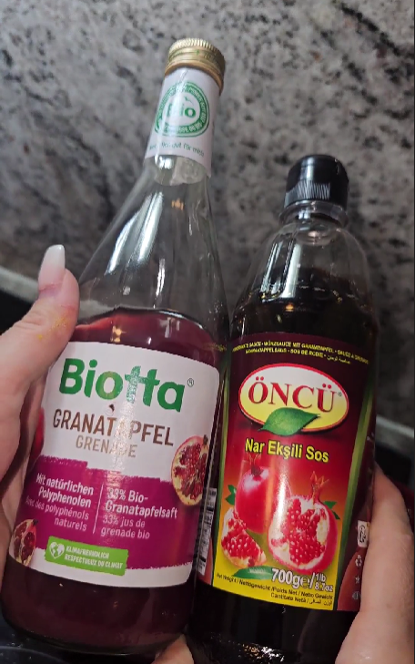 Alternativ 7–8 EL Granatapfelsirup und 1–2 EL Zitronensaft, damit es geschmacklich möglichst nahe an Granatapfelmelasse kommt